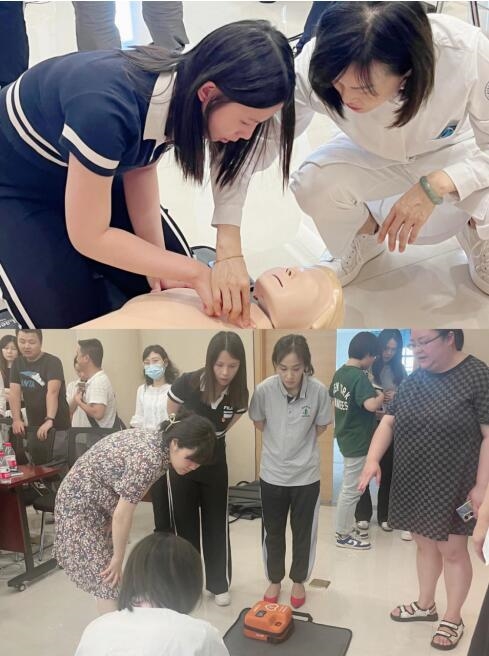 培訓分為理論講解、現場演示、實踐操作三個部分。重慶醫科大學附屬第一醫院急救專家通過圖文并茂的課件、生動形象的教學案例,用通俗易懂的語言從最基本的救護知識和理念入手,重點對心肺復蘇、AED(自動體外除顫儀)的使用、創傷止血包扎、氣道異物梗阻等意外傷害的應急救護方法進行了詳細講解。