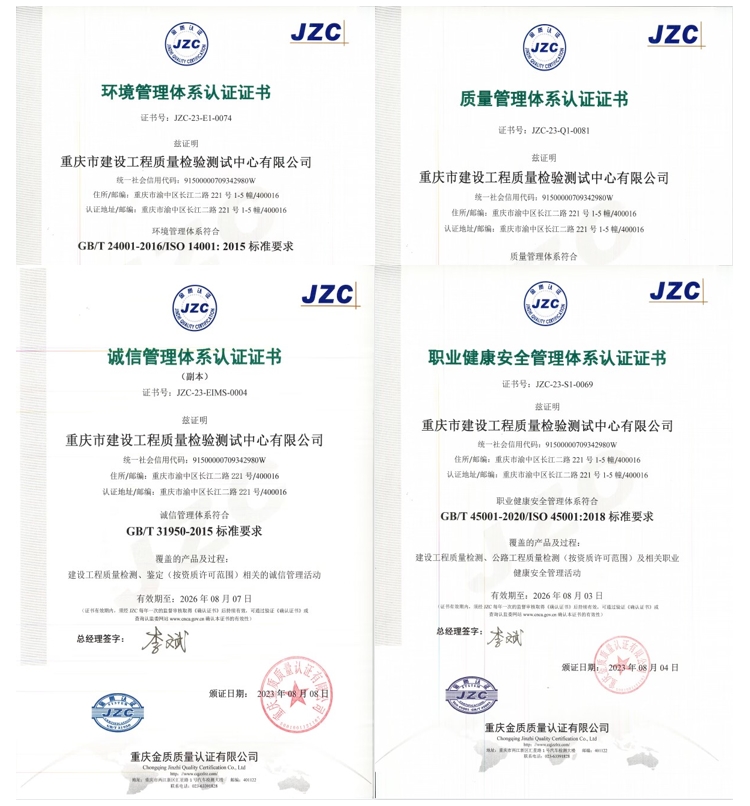 近日,經過質量、環境、職業健康安全、誠信管理體系現場評審,重慶設計集團市建科院公司所屬子公司——重慶市建設工程質量檢驗測試中心有限公司(簡稱檢測中心)順利通過2023年度ISO資質再認證評審。