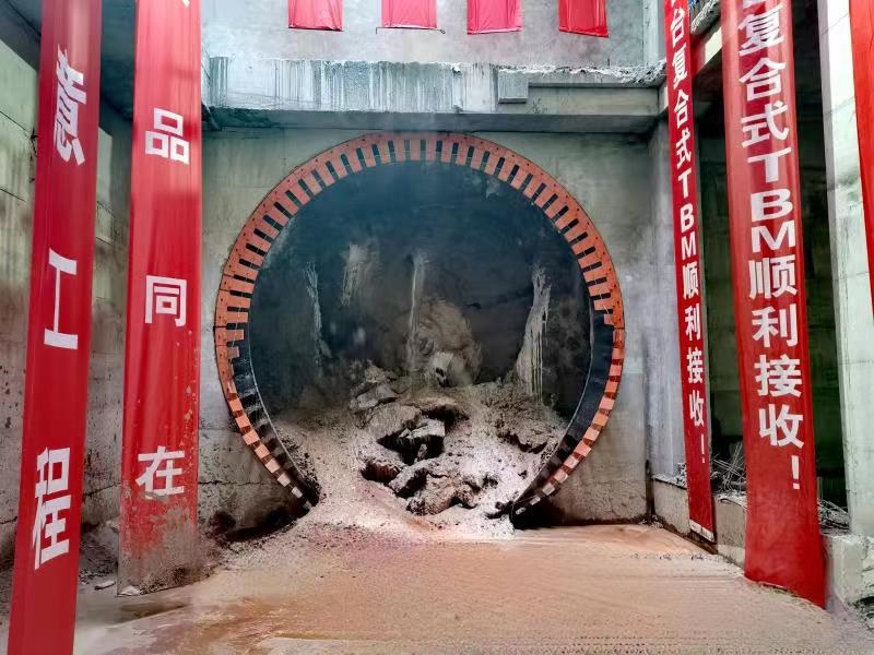 瓦茶區(qū)間為單洞雙線隧道,左線長約1.7km,最大坡度36‰,隧道頂部最大埋深約32m,系該工程首條長距離、大坡度盾構(gòu)隧道。掘進(jìn)路線主要穿越回填土區(qū),隧道上方范圍內(nèi)有多個(gè)U型回填土層集水凹槽,地下水豐富,水壓較高,地質(zhì)條件復(fù)雜,掘進(jìn)過程中易造成管片上浮、錯(cuò)臺(tái)、滲漏水、掘進(jìn)效率低等問題。盾構(gòu)施工過程采用了特殊調(diào)配添加劑的預(yù)拌砂漿、在富水區(qū)開孔泄水時(shí)采用雙液漿封水環(huán)和二次補(bǔ)注漿等技術(shù)措施,確保了施工質(zhì)量,實(shí)現(xiàn)了TBM勻速穩(wěn)步掘進(jìn)。同時(shí)借助先進(jìn)的電子監(jiān)測設(shè)備和智慧工地管理系統(tǒng),實(shí)現(xiàn)全施工過程信息化監(jiān)測,切實(shí)保障施工過程安全。市建科院檢測中心作為該工程的第三方檢測方,在盾構(gòu)施工過程中,積極組織人員,全力配合項(xiàng)目進(jìn)度,及時(shí)開展相關(guān)料原材料等檢測工作,及時(shí)出具檢測報(bào)告,確保各項(xiàng)檢測參數(shù)滿足設(shè)計(jì)及規(guī)范要求。