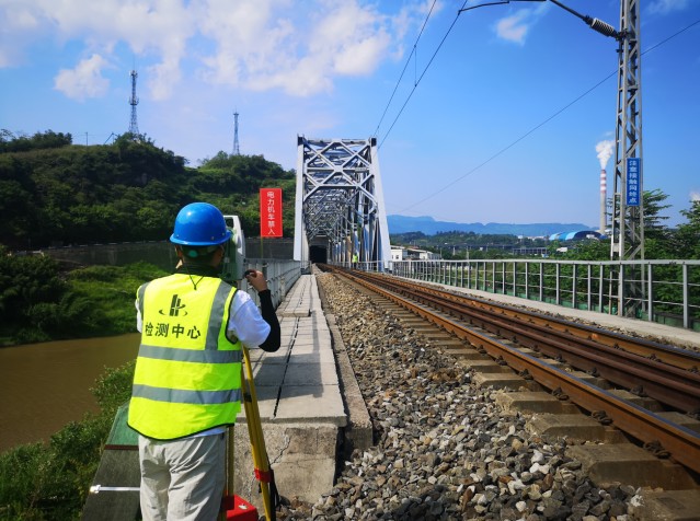 (檢測(cè)人員進(jìn)行橋梁線性測(cè)量)