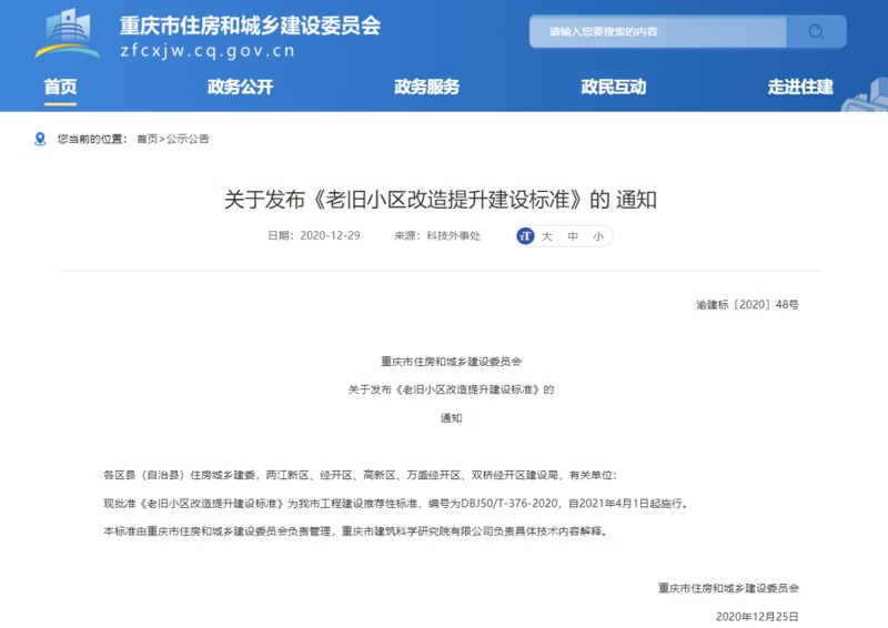 市建科院牽頭編制的《老舊小區改造提升建設標準》獲市住建委批準發布